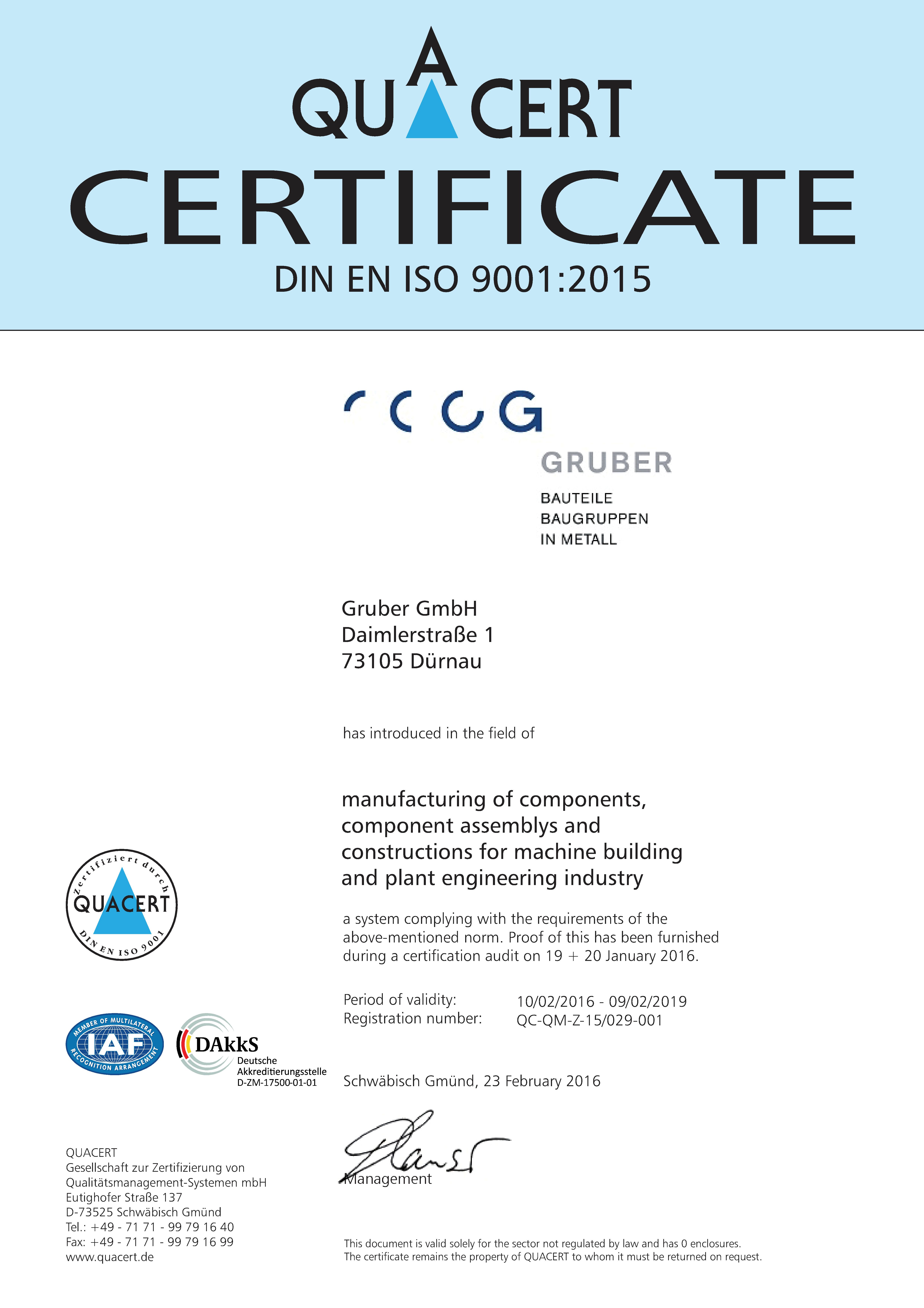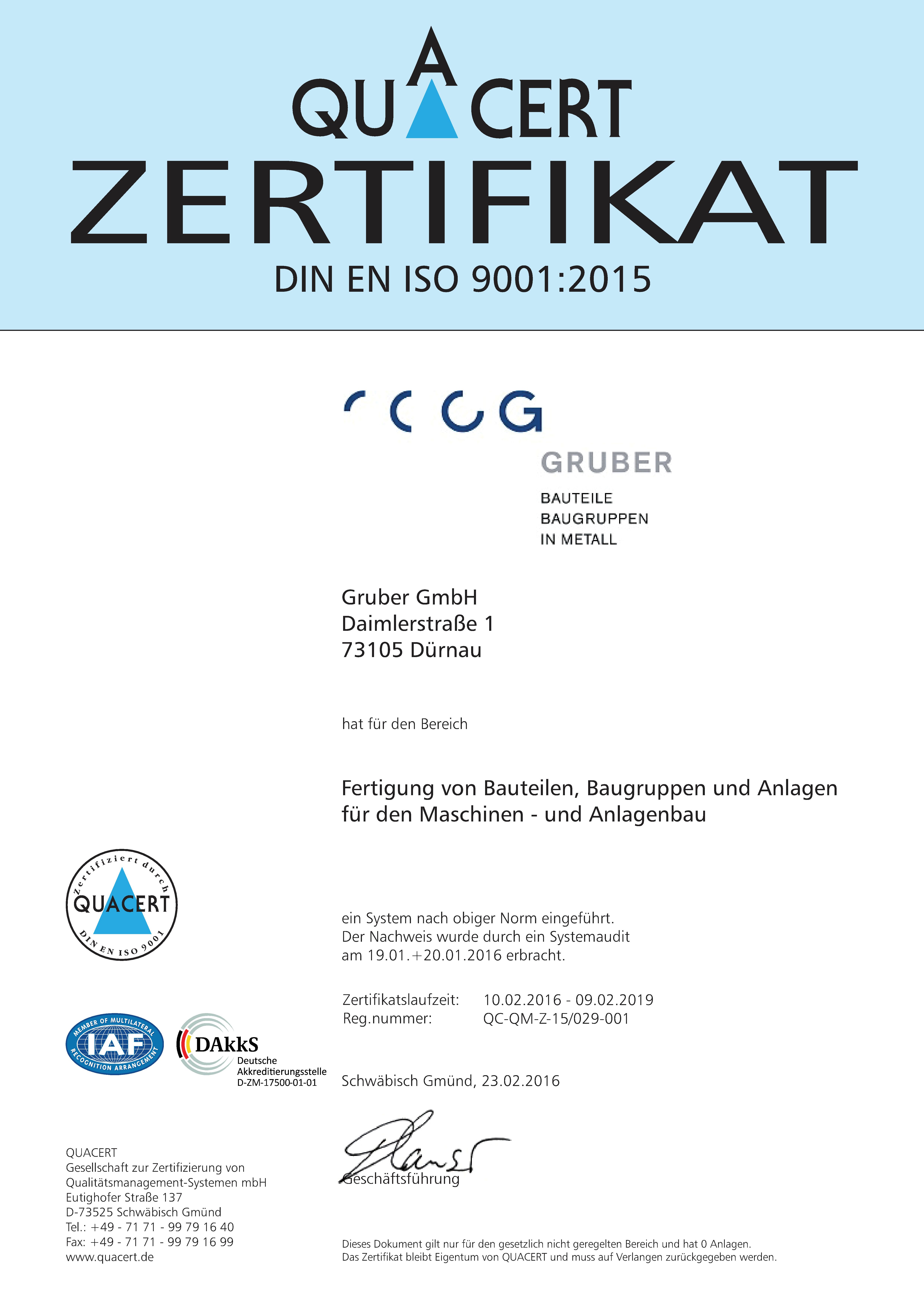 Sehr geehrte Kundinnen, sehr geehrte Kunden, wir freuen uns über Ihr Interesse an der Firma Gruber – Ihrem zuverlässigen Partner für Bauteile und Baugruppen in Metall. Bereits seit 1987 stehen wir als Familienunternehmen für eine neue Generation von Firmen: International ausgerichtet und lokal verbunden arbeiten wir zukunftsorientiert und nachhaltig zugleich. In unserer Brache ist alles auf die Zukunft ausgerichtet. Dazu gehört natürlich auch, nach vorne zu blicken wenn es darum geht, unsere Firma auf dem neuesten Stand der Technik zu halten. Das ist faszinierend. Und es ist wichtig, um für Sie auf jüngste Erkenntnisse in Produktion und Kommunikation zurückgreifen zu können. Unsere Maschinen, ebenso wie alle Systeme rund um den IT-Bereich, entsprechen den hohen Ansprüchen eines globalen Marktes im Heute. Das bedeutet auch, unsere Mitarbeiterinnen und Mitarbeiter im Umgang mit den rasanten Entwicklungen in Technik und Industrie zu fördern und zu schulen. Gerade bei unseren jungen Mitarbeiterinnen und Mitarbeitern kommen Zukunft und Nachhaltigkeit zusammen. Mit unseren Auszubildenden im Bereich Metallbau und Konstruktionstechnik können wir in eine neue Generation von hochqualifizierten und verantwortungsvollen Fachkräften investieren. Wir sind stolz auf unser Team, das sich mit geballtem Know-how und breit gefächertem Wissen allen Herausforderungen stellt. So können wir sagen: Wir haben die Kenntnisse und die Möglichkeiten, mit individuell zugeschnittenen Lösungen auf lange Sicht ein zuverlässiger und innovativer Partner für unsere Kunden im In- und Ausland zu sein. Neben dieser wichtigen, zukunftsorientierten Ausrichtung unserer Firma ist Nachhaltigkeit der zweite große Eckpfeiler unserer Unternehmensphilosophie. Für uns bedeutet Erfolg, neben dem beständigen Ausbau unseres Unternehmens, die uns wichtigen Werte nicht aus den Augen zu verlieren. Fairness, soziales und gesellschaftliches Engagement in der Region sowie Umweltverantwortung sind dabei besonders bedeutsame Gesichtspunkte. Vertrauen entsteht durch Qualität. Mit unserem Namen stehen wir für effiziente Lösungen und innovatives Denken. Wir von der Firma Gruber sind Ihr zuverlässiger Partner in allen Fragen der Fertigung hochwertiger Bauteile, Baugruppen und Lösungen aus Metall. Wie die einzelnen Parts und Prozesse einer Produktionskette, bilden die vielen Einzelteile eines Unternehmens die Vertrauensbasis für eine gute Zusammenarbeit. Unsere Mitarbeiterinnen und Mitarbeiter sind mit ihrem Fachwissen, ihrer Neugierde auf Neues und ihrem handwerklichen Können eine wichtige Säule unseres Unternehmens. Darüber hinaus arbeitet unser Team mit hochwertigen, modernen Maschinen. Unsere Ausstattung entspricht den Möglichkeiten einer Metallbau Firma im Heute. Wir verfügen von den Maschinen über die neuesten Kommunikationsmitteln bis hin zur Unternehmenssoftware alles, was ein Unternehmen auf dem internationalen Markt benötigt. Daher können wir sowohl bei Klein- als auch bei Großaufträgen für Termintreue und hochwertige Qualität einstehen. Das lässt sich nicht nur an unseren Produkten, sondern auch in unseren Zertifizierungen bemessen. Unseren hohen Qualitätsstandard bestätigt das Gütesiegel nach Standard DIN EN ISO 9001:2015. Wir freuen uns auf die Zusammenarbeit mit Ihnen! Petra und Harald Gruber