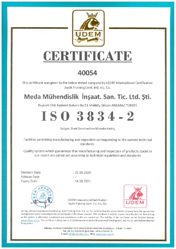 Die MEDA GROUP erbringt seit mehr als 25 Jahren Dienstleistungen für die türkische und globale Industrie im Bereich der Stahlkonstruktion, Maschinen- und Anlagenproduktion. Die MEDA GROUP ist auf die Herstellung von Bauteilen für Brech- und Siebanlagen, Tunnelbohrmaschinen (TBM), Betonanlagen sowie Hochleistungs- und Baumaschinen spezialisiert und bietet vielen Unternehmen, die eine führende Rolle bei Konstruktion, Produktion und Montage spielen, technische Lösungen von Stahlkonstruktionen, Maschinen und Ausrüstungsprojekten. Die MEDA GROUP ist mit ihrem Produktionswerk in Ankara auf einer Fläche von 3.600 Quadratmetern und dem erfolgreichen Abschluss lokaler und internationaler Projekte als Lösungspartner mit ihren 50 spezialisierten Mitarbeitern eines der wenigen Unternehmen, die es geschafft haben, sich zusammenzuschließen Eine innovative und wettbewerbsfähige Strategie mit nachhaltiger Qualität.