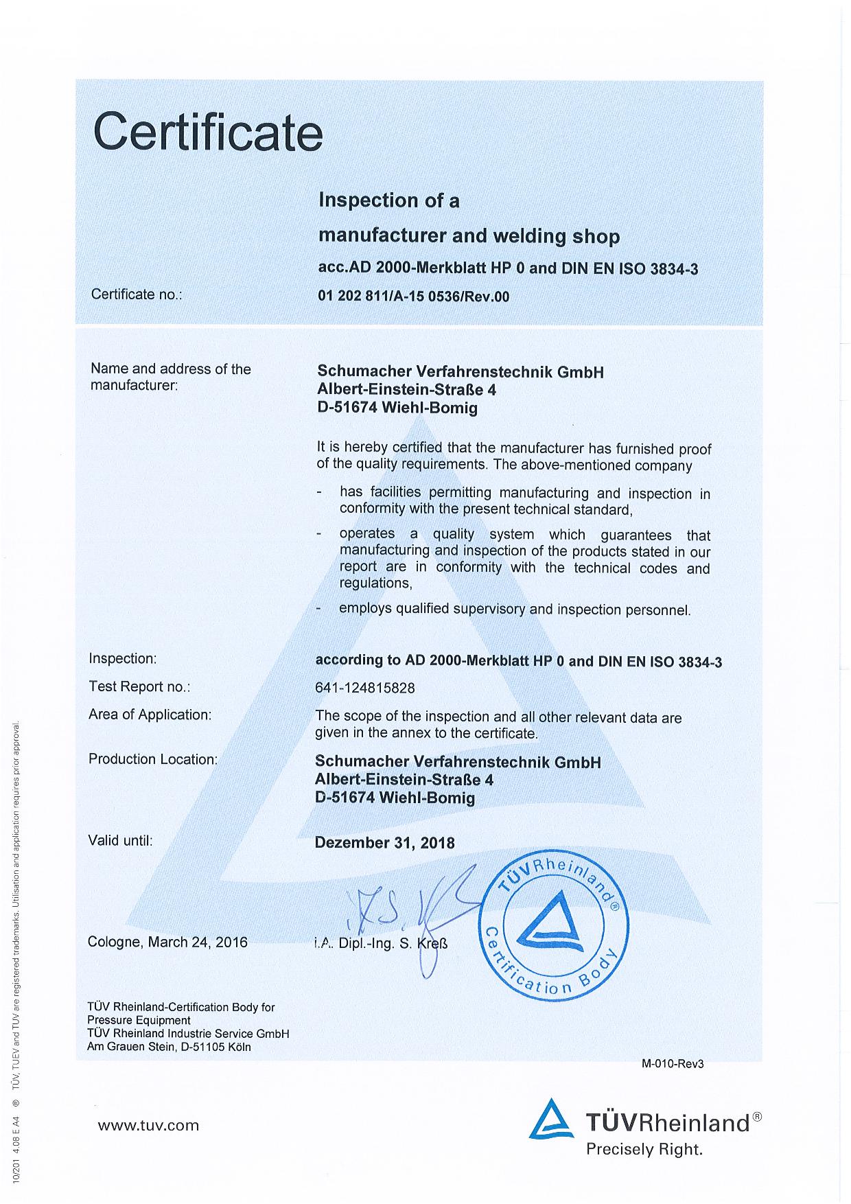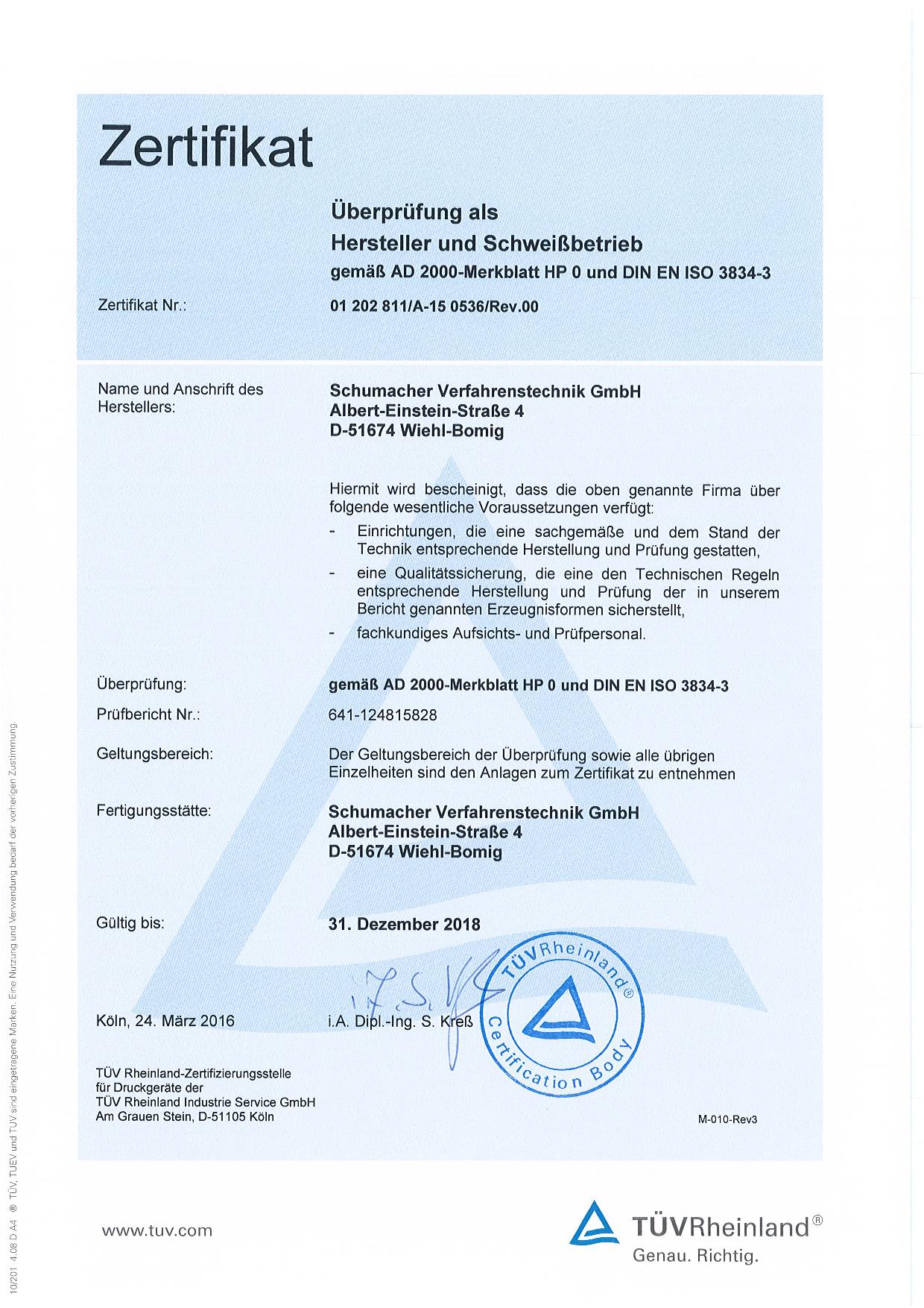 Wir sind Spezialist für Thermoschutzrohre, Thermowells, statische Mischer, Druckbehälter, Wärmetauscher und Rohrkühler. Wir verfügen über eine Zulassung gem. ASME Section VIII Div.1 (Certificate No.: 54.838 - 27.03.2018) und sind entsprechend zugel. Stamp - Holder. Ebenso sind wir zugelassener Hersteller für Wehrtechnische Produkte gem. DIN 2303 und haben die Zulassung zum Herstellen von Druckgeräten der Kat. II Modul A.
