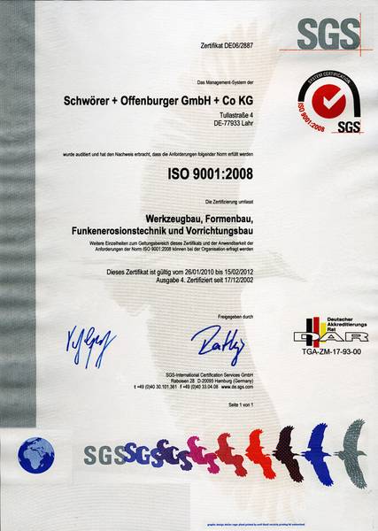 Schwörer und Offenburger ist ein Unternehmen, das sich auf die Herstellung von hochwertigen Werkzeugen, Vorrichtungen und Maschinenbauteilen spezialisiert hat. Im Juli 1996 von den beiden Handwerksmeistern Werner Schwörer und Bernd Offenburger als 2-Mann Betrieb gegründet, hat sich das Unternehmen stetig entwickelt. Heute beschäftigt es bereits 20 Mitarbeiter, die ausnahmslos über eine qualifizierte Facharbeiterausbildung und langjährige Berufserfahrung verfügen. Ausgestattet mit modernsten CNC-gesteuerten Bearbeitungsmaschinen kann Schwörer + Offenburger hochkomplexe Fertigungsaufgaben bewältigen und individuelle Problemlösungen für anspruchsvolle Kundenanforderungen verwirklichen. Zum Kundenstamm von Schwörer und Offenburger zählen namhafte Unternehmen aus dem Maschinenbau, der Blech- und Kunstoffverarbeitung sowie Zulieferer der Automobilindustrie und Firmen der Medizintechnik in ganz Südwestdeutschland. Wir sehen uns als Komplettfertiger von anspruchsvollen Einzelteilen oder Baugruppen, sowie als verlängerte Werkbank für einzelne Bearbeitungen. Wir verfügen über einen hochmodernen Maschinenpark, mit den Schwerpunkten CNC-Fräsen und Drahterodieren. Produkte und Leistungen: Stanzwerkzeuge, Folgeverbundwerkzeuge, Schnittwerkzeuge Schäumwerkzeuge, Vakuumtiefziehformen, Blasformen, Laminierwerkzeuge Ersatzteile für Elektronikindustrie/Maschinenbau/Medizintechnik Montagevorrichtungen, Prüfvorrichtungen, Schweißvorrichtungen, Lehrenbau CNC-Fräsen, 3D-Fräsen, 5Achs-simultan, Hartfräsen, HSC-Fräsen, Freiformflächen Edelstahlzerspanung(1.4301, 1.4571,andere) Bearbeitung von Sonderwerkstoffe (Titan, Ampco, Wirbalit, andere) Drahterodieren, Drahtschneiden (Stahl, Alu, Buntmetalle, Hartmetall, PKD), z.B. Pressmatrizen, Extrusionmatrizen, Messer, Stempel, sonstige Lohnarbeiten Senkerodieren, Startlocherodieren Flachschleifen bis 1000x600x400mm Funkenerosionstechnik