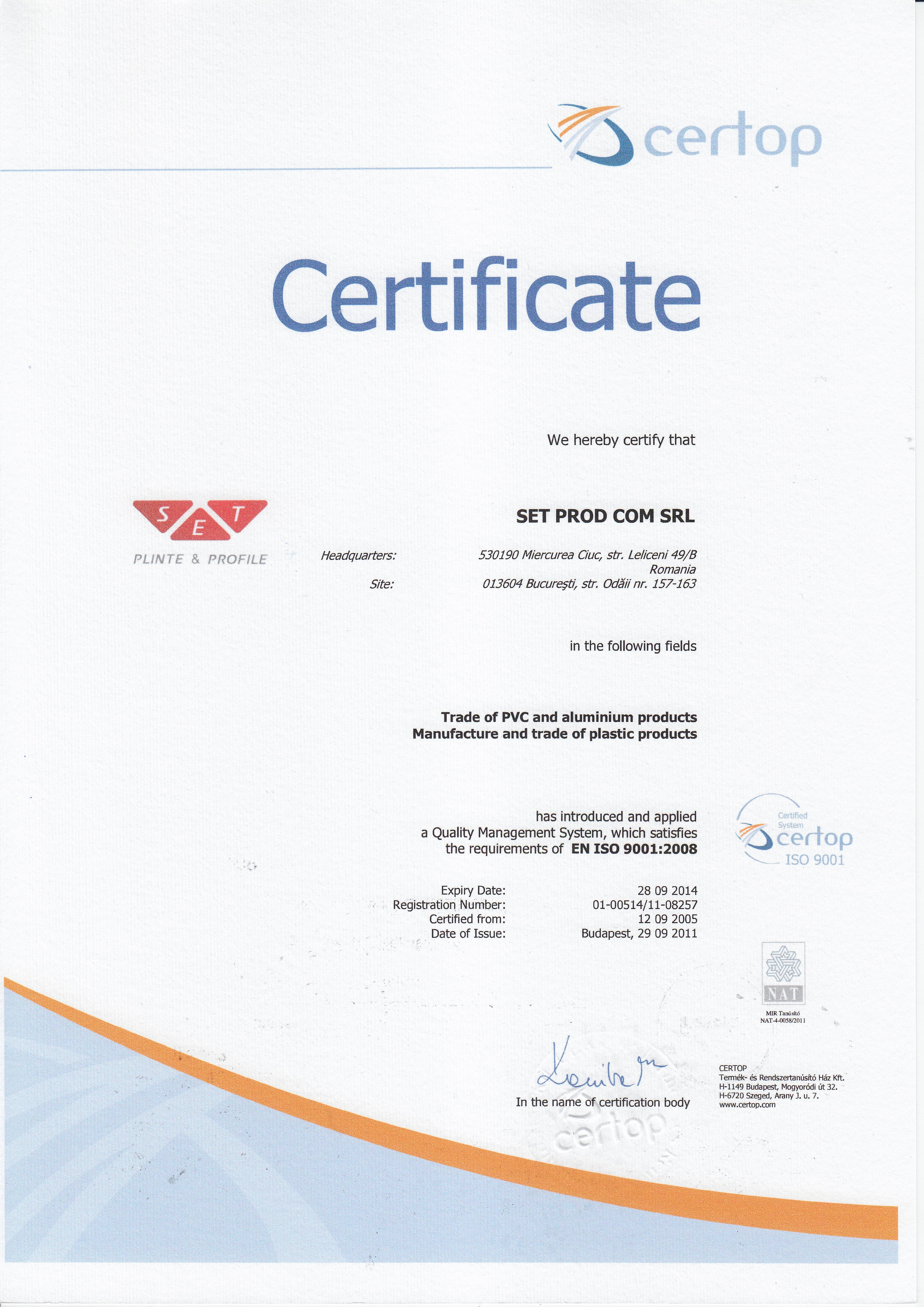 Die Firma SETPRODCOM wurde in 1995 gegründet. In der Anfangsphase bildete unser Kerngeschäft den Großhandel. Diese Tätigkeit wurde mit dem Spritzgießen und Tampondrücken von Kunstoffen erweitert. Zurzeit läuft die Produktion mit zwei Arburg-Spritzgußmaschinen und drei Tampon-Druckmaschinen. Seit 2005 entspricht unsere Firma den Forderungen der ISO 9001. Unsere Hauptprodukte sind die Zubehöre von Sockelleisten. Dadurch haben wir Erfahrung in der Herstellung von kleinen und präzisen Teilen gewonnen. Diese Produkte werden in verschiedenen Farben und mit verschiedenen Druckbildern gefertigt. Wir legen Wert auf höchste Qualität. Wir übernehmen Aufträge auch für Lohnarbeiten. Einige unser wichtigsten Kunden sind: Bolta Industrie, Bauprofile GmbH, Profiplast kft. Die Produkte SETPRODCOM finden Sie auch in vielen Baumärkten, zB: in der rumänischen Baumarktkette Dedeman.