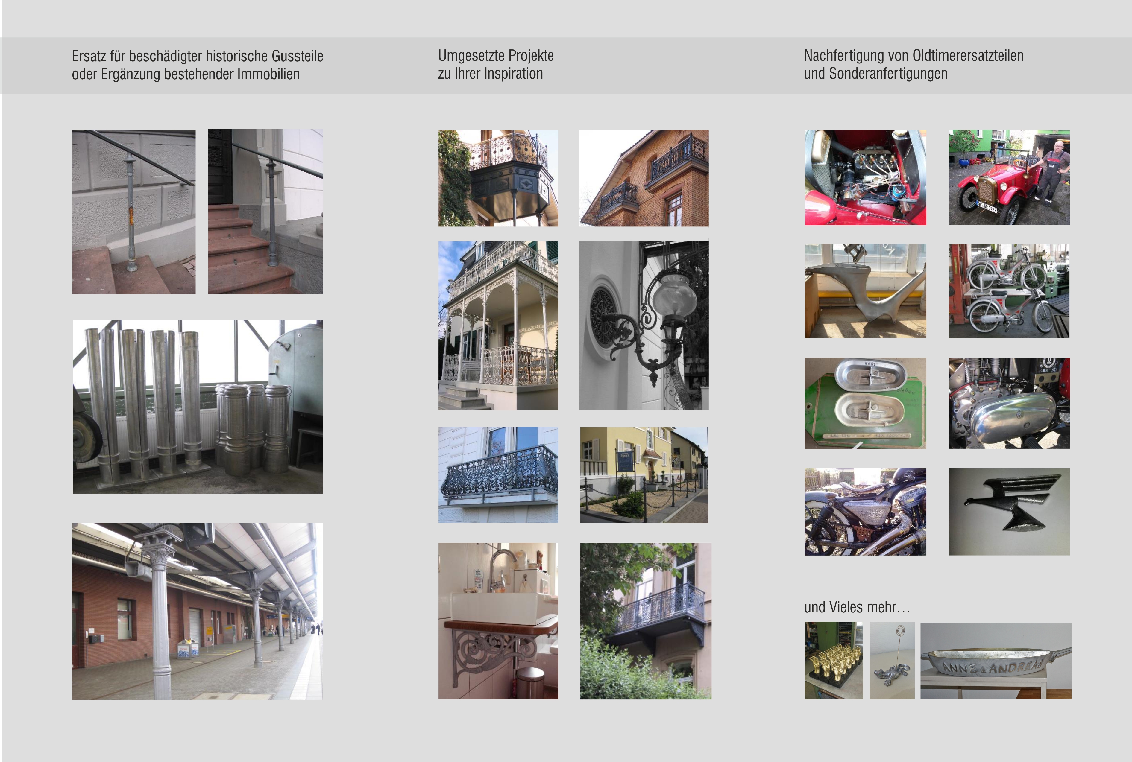 Wir bieten ihnen: Aluminiumguss Sandguss Kokillenguss Fertigung ab Losgröße Eins Aluminiumsand- und Kokillenguss AlSi9Cu3 / AlSi7Mg0,3 / AlZn10Si8Mg / AlSi11 /AlMg3Cu / AlSi10Mg und Andere Bei Bedarf mit Wärmebehandlung, Endbearbeitung, Montage und Oberflächen Entwicklungsberatung funktionsfähige Erstmuster schnell und günstig Modell- und Kokillenbau Neben der Fertigung von Industrieteilen haben wir uns auf die Herstellung von historischen Gußteilen und Oldtimerersatzteilen spezialisiert