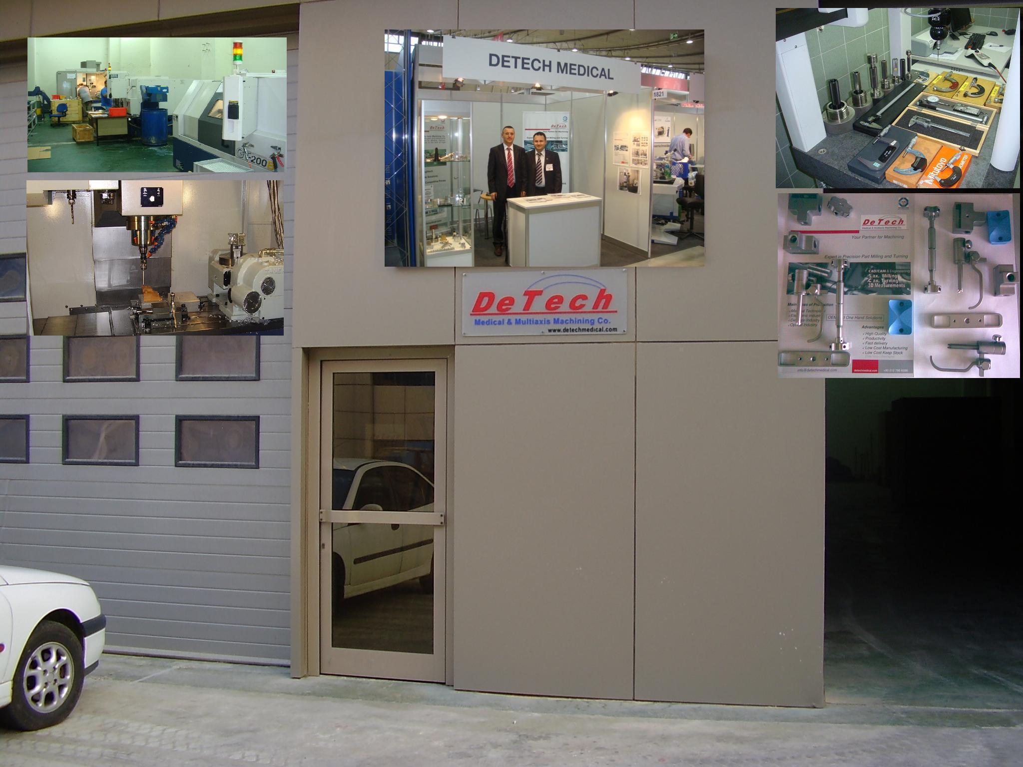 Detech Medical & Multiaxis Machining Co. produces mainly high quality parts and components for high-tech industries i.e. Medical, Optical, Electronic, Aviation and Defense in the field of high precision machining. Our Working Field: *5ax. CNC –Milling, *3ax. CNC Milling Maximum 1020x600x600 mm *CNC- Turning till Ø280 mm *CNC- Turning and Milling with C axis: till Ø280 mm. *Surface treatments for machined parts are possible *3D- Measurements (1000x600x550) *CAD-CAM Systems Our high qualified experienced personal and best suited machine park is grant for our quality. DETECH PHILOSOPHIE: CUSTOMER SATICFACTION FIRST!!! *QUALITY: Highest Quality with highest Technology and highly qualified personnel, certification from TÜV-SÜD. *COST: minimal flow time *FLEXIBILITY: Capability to modify and to change Cycles for demands +RELIABILITY: Not only supplier also a Partner and long term business relationships *TIMELY ACCURACY AND FAST DELIVERY: Experience, Quality Machines, Free Zone and location *PRIVACY: Our utmost priority to protect your privacy and data’s We are looking forward to your request and to having your long term business cooperation!