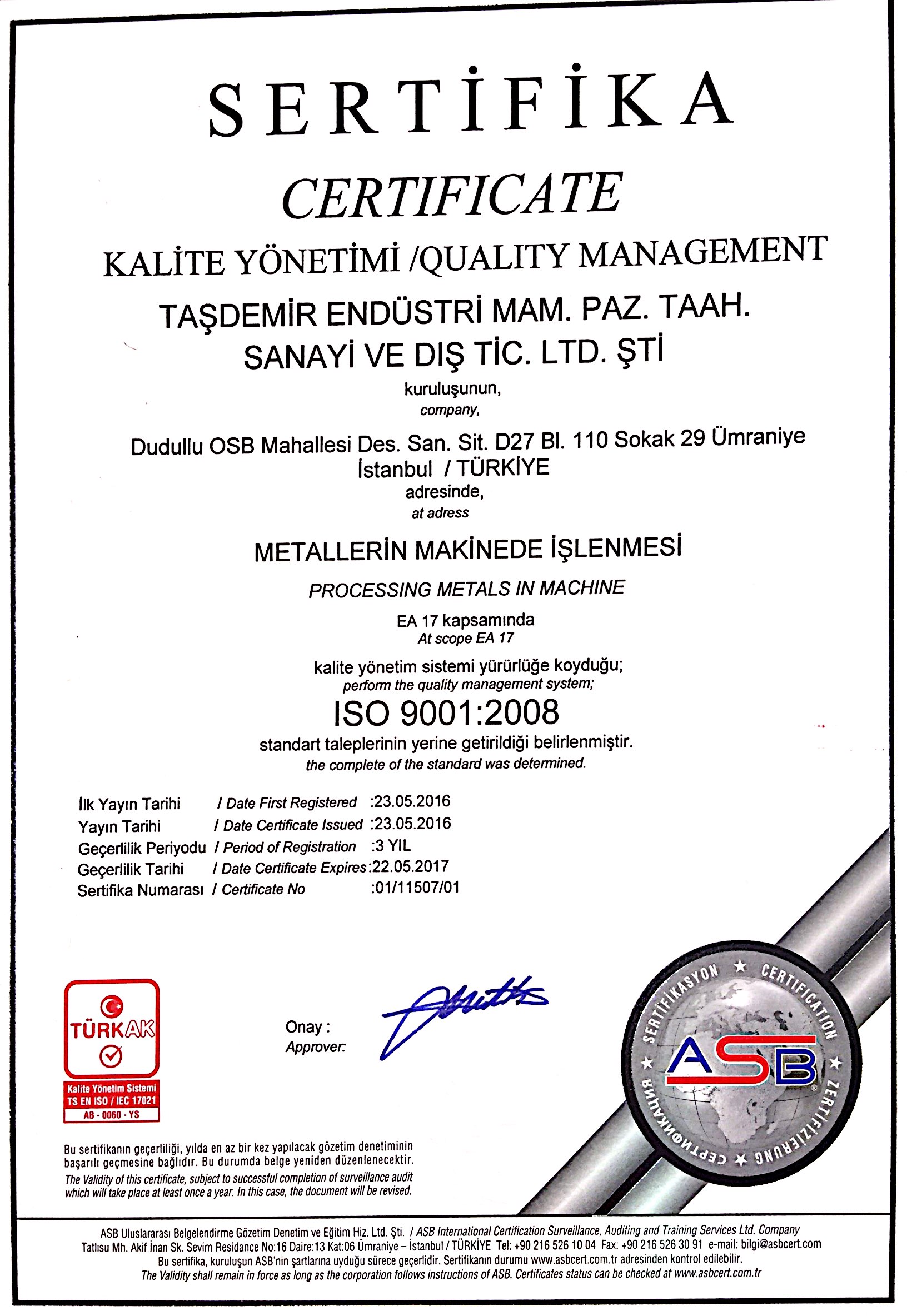 Taşdemir Endüstri Mam. Paz. Taah. San. ve Dış Tic. Ltd. Şti.