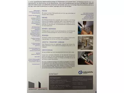 The Hohenroth workshop for disabled people (WfbM) manufactures precision parts made of plastic, ferrous and non-ferrous metal for the automotive and electrical industries, mechanical engineering and medical technology. We have a versatile and modern machine park that leaves nothing to be desired by our customers. We are certified according to the ISO 9001 industry standard. Our high quality standard is ensured by CNC machines, suitable measuring equipment, measuring computers and qualified specialists.