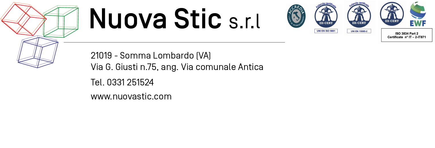 The company Nuova Stic was founded in 1984 and is since then a highly specialized manufacturer of metal parts. What makes us different are the versatility and flexibility, which offer customers industrial production as well as customized unique pieces. The company pay the particular attention to quality and customer satisfaction. Nuova Stic enhances highly qualified employees thanks to the continuous professional development. The quality management system is certified according to ISO 9001:2015 Nostre lavorazioni: - Laser Cutting - punching, - bending, - deburring, - certified welding EN 15085 and ISO 3834.