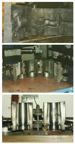 The Model and mold mainly produces molds and accessories for the glass industry. Production program includes: * Blow Molding * Compression molding * Bulk forms * Draw shapes * Forms for your special need for manual and machine glass production * According to relevant drawings and spare parts for machines are manufactured. In my model and foundry models in wood and plastic are manufactured. These are used to Gußstückherstellung for glass molding or machine parts. The own model ensures a quick and easy purchasing of castings. In the mechanical workshops, the machining of the castings and forgings done. We mainly make molds manufactures gray cast iron, aluminum, chromium, nickel and carbon. The Model and mold has a very extensive mechanical processing option: Turning CNC and conventional Milling CNC and conventional Surface Grinding CNC and conventional A CAD work station offers the possibility to design and produce outlines corresponding programs.Also the digitizing (scanning) of existing models or glass parts in 3D and their processing on the CAD is - computer possible. Thus, a production of complicated models and electrodes is given. The possibility of Erosivbearbeitung is through their own EDM and wire EDM. The Graveurabteilung completed the pre-milled or eroded shape contours to the high gloss polish. However, there are traditional (with hammer, chisel and file) made with great craftsmanship even engravings. In the welding shop, edges and surfaces with metal spray powder from Castolin armored. This improved service life of the molds are achieved. You see, in my company glass molds are manufactured from start to finish. This ensures independence, permanent influence on the production and also ensures the shortest delivery time.